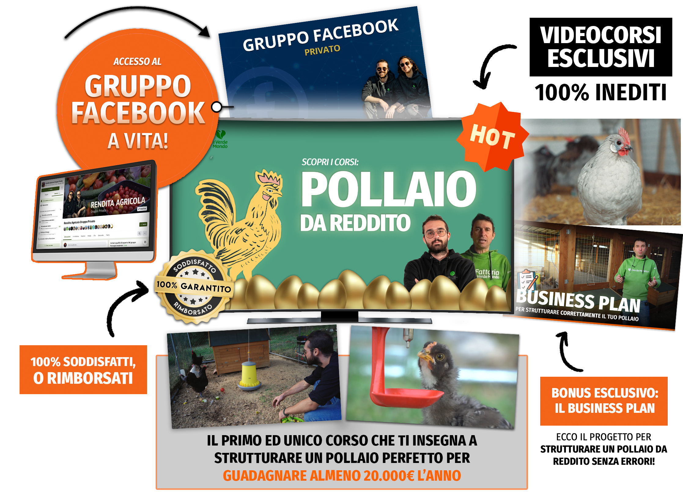 Il primo ed unico corso che ti insegnerà a strutturare il pollaio perfetto per le tue esigenze dalla A alla Z e ricavarti un’entrata costante e sicura di almeno 20.000€ l’anno, senza commettere errori!