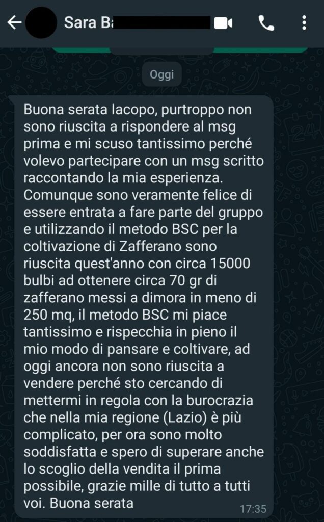 “Grazie a loro ho raggiunto risultati che non avrei mai pensato e sono riuscito a creare una forte strategia di vendita che mi ha permesso di vendere zafferano tra i 70€ e gli 80€/g”.